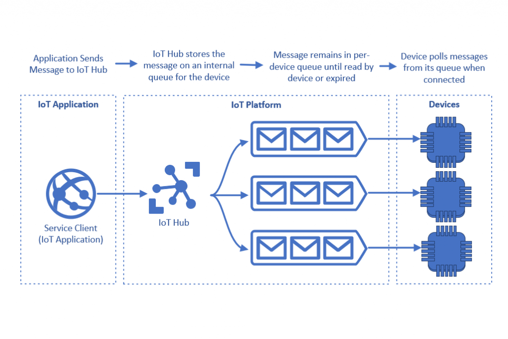 Learn about how applications can use cloud-to-device messaging or direct methods to send commands to IoT devices.